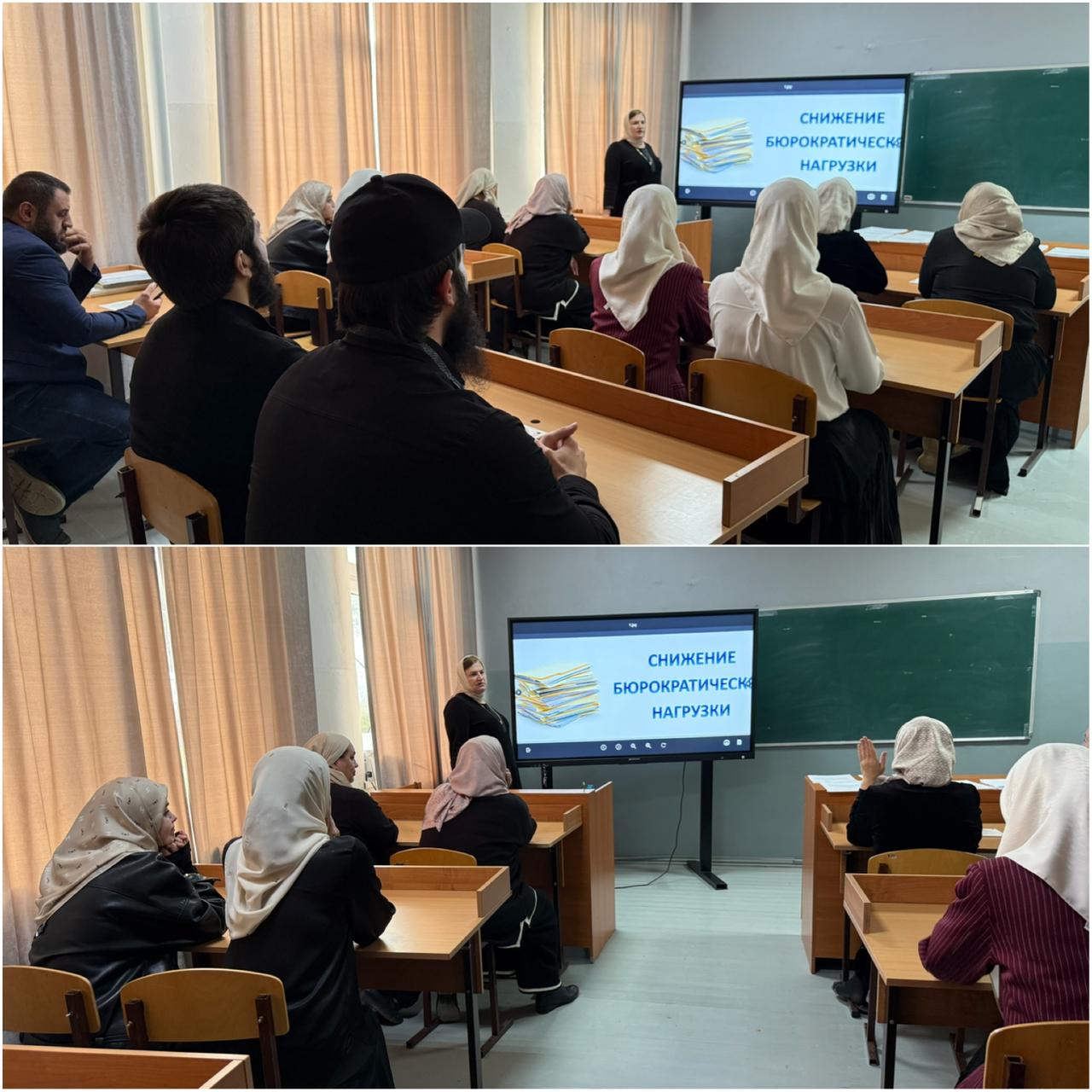 Особое внимание уделили новым федеральным рекомендациям по сокращению бюрократической нагрузки. Учителя работали в группах, где предложили конкретные меры: исключить отчеты, продублированные в электронном журнале, сократить количество плановых совещаний и утвердить «дни без бумажной работы».